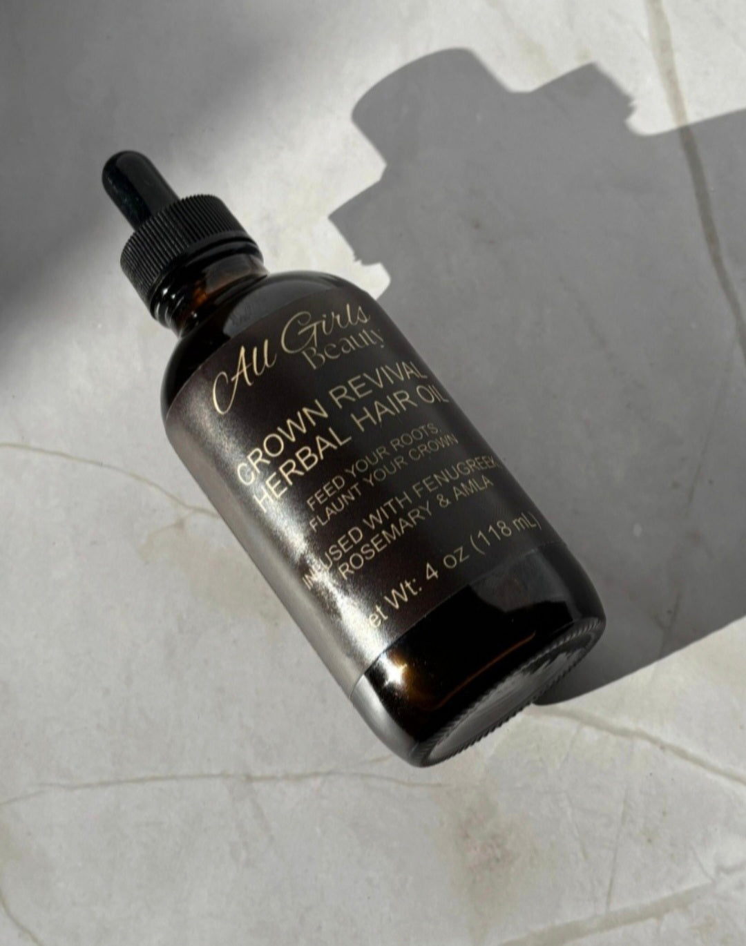 Unlock the secret to fuller, healthier, and more radiant hair with Crown Revival Herbal Hair Oil by All Girls Beauty. Expertly crafted with time-tested Ayurvedic herbs, this nourishing formula is infused for 90 days with Fenugreek, Rosemary, Amla, Chebe, Neem, Nettle and other powerful botanicals known to support hair growth and scalp health.